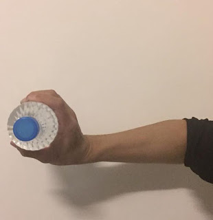 將寶特瓶以下面幾個動作抓住,並且固定不動大約30秒-60秒的時間,每個動作皆做5組。
